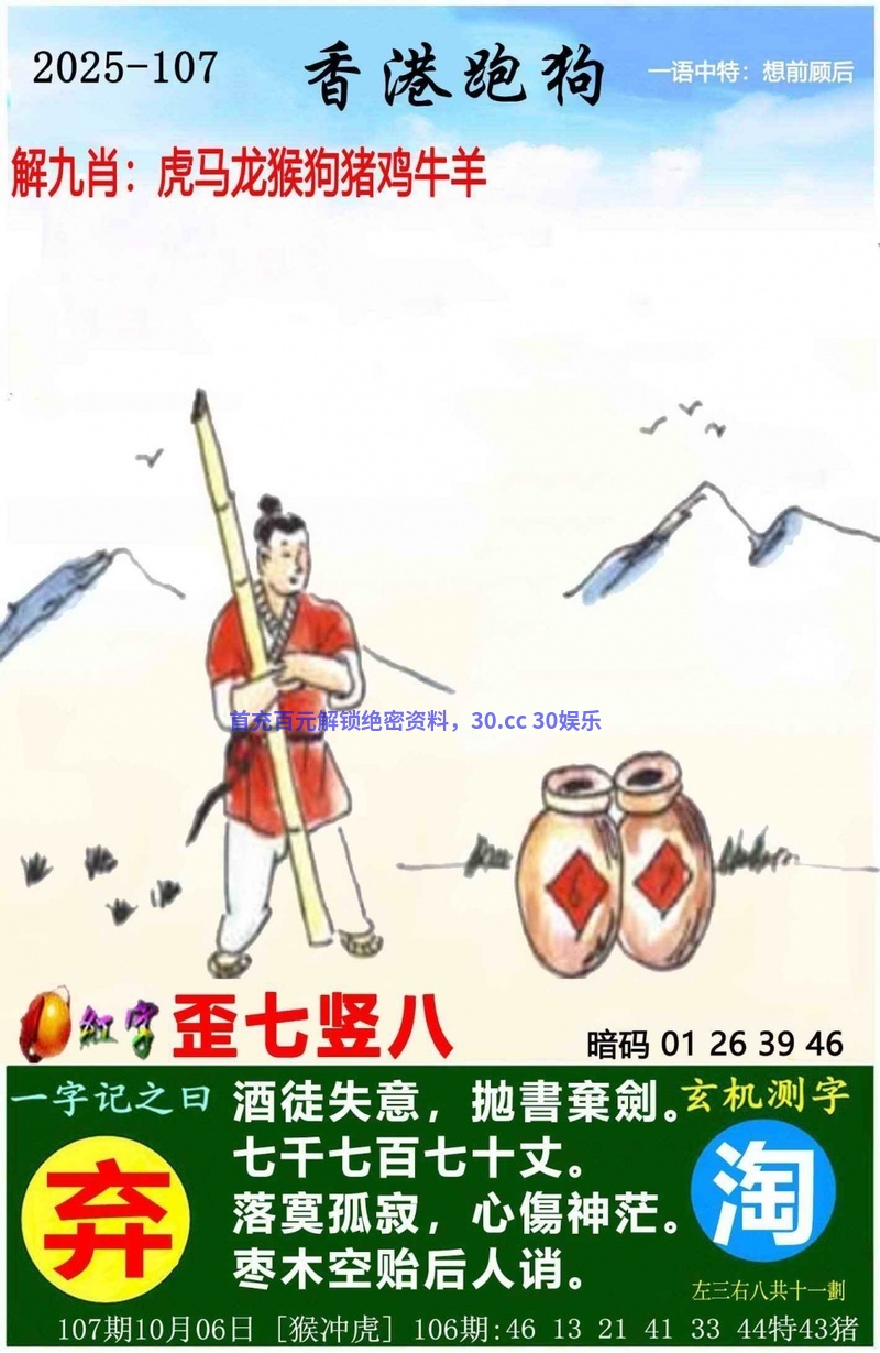 106期:今期鼠龙猴看定,特碼旺大和双出开猪43准 ①杀肖:牛马狗 ②图解:鼠龙猴鸡猪 ③大数+双数 |